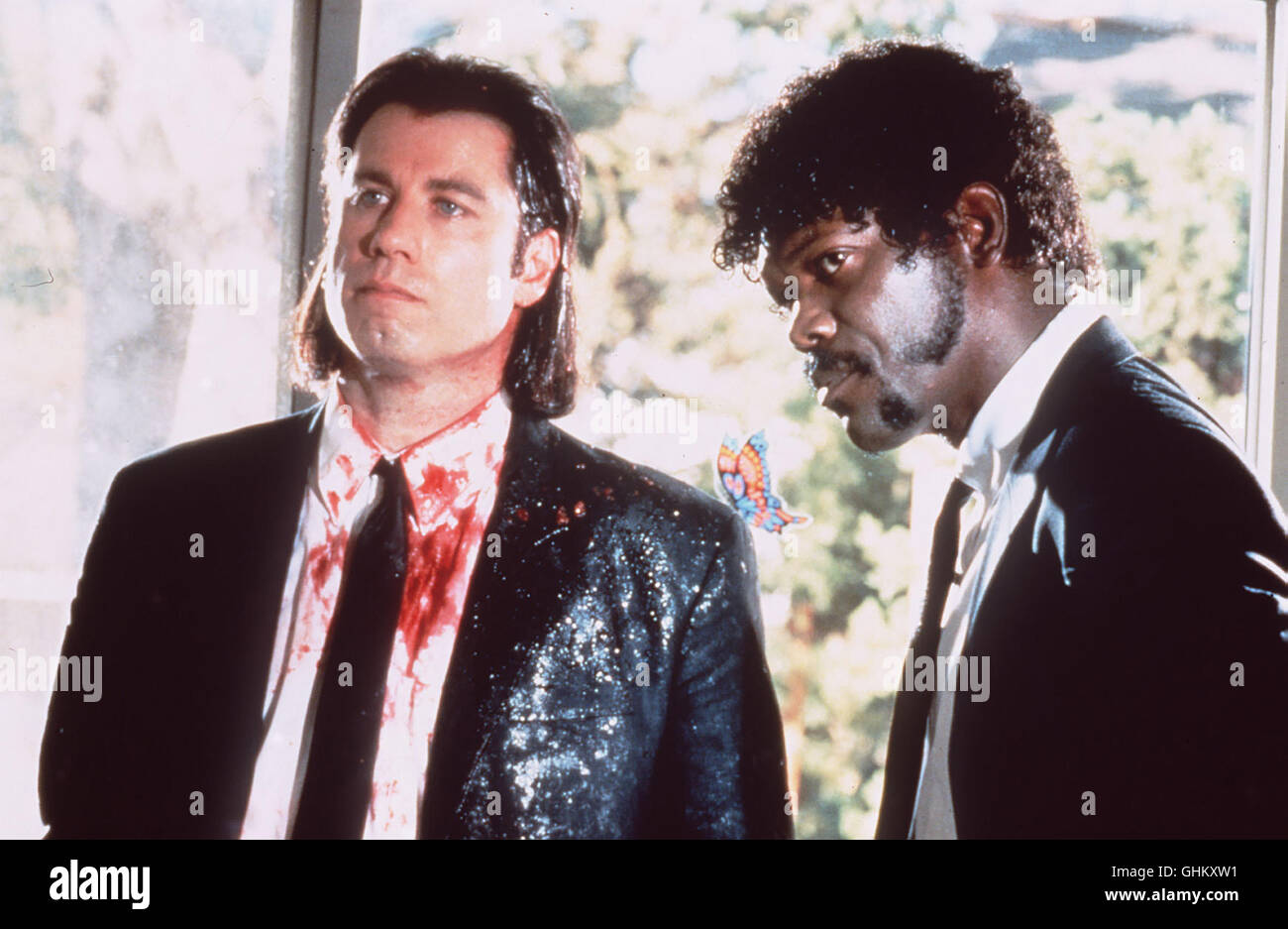Killer Vincent Vega John Travolta Und Jules Winnfield Samuel Erschiessen Auf Der Jagd Nach Einer Jugendbuchklassikers Aktentasche Zwei Amateurganoven Nehmen Einen Dritten Sterben Als Geisel Und Uberleben Wie Durch Ein Wunder Einen