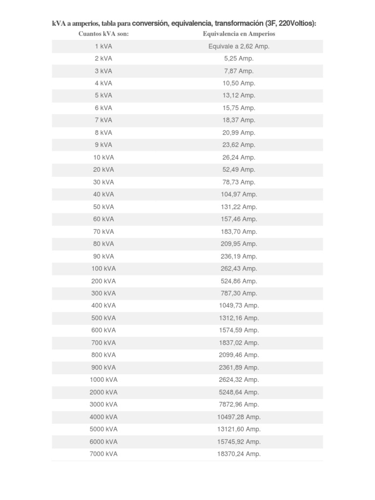 Tabla De Carga En Kva A Amperios Pdf Electronica De Consumo Science
